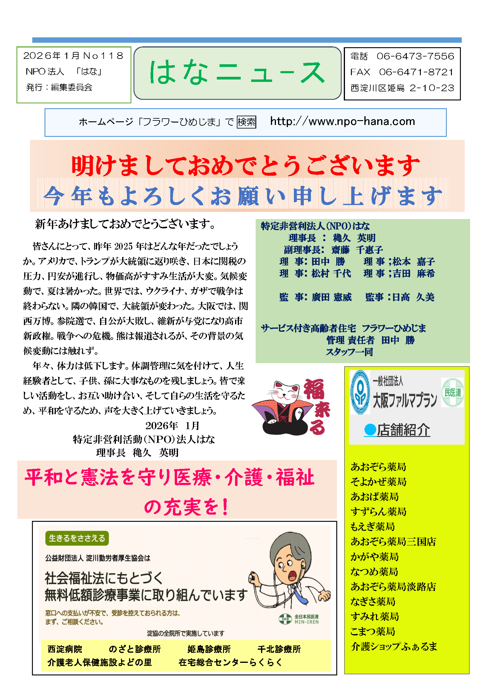 はなニュース No118 2026年1月号です。